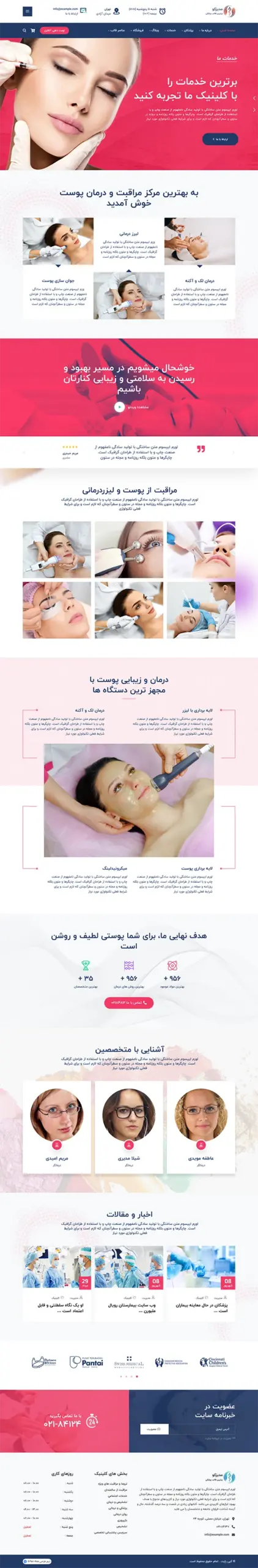 • نمایش لیست کامل خدمات مانند لیزر، بوتاکس، فیشیال، پاکسازی پوست، مزوتراپی و غیره.